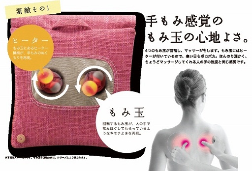 クッションに内蔵されている4つのもみ玉で、まるでプロの手でマッサージされているような気分に…